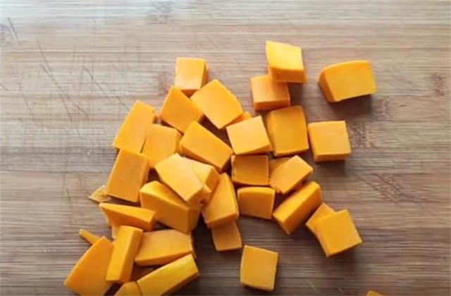 1.今天和大家分享一個(gè)南瓜松餅的做法,香甜松軟,涼了也不硬。準(zhǔn)備約300克南瓜,洗凈去皮切成小塊,放入料理機(jī),加入約320到350毫升的熱水,打成南瓜泥。