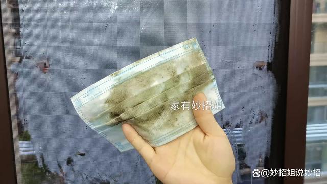接下來,就可以直接用口罩來擦拭紗窗了。牙膏、小蘇打和洗潔精都具有很強的清潔作用,可以有助于將附著在紗窗孔洞的一些污漬清潔掉。而白醋中的醋酸有軟化作用,就可以軟化紗窗上附著的一些頑固污漬。我們利用這個溶液來清潔紗窗,就能有效地將紗窗上的臟污都擦拭干凈了。當我們把紗窗都擦拭過一遍之后,就會明顯的看到口罩變得非常臟了。