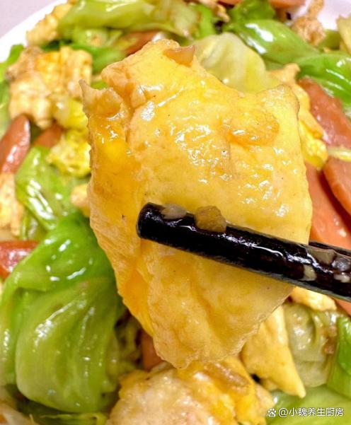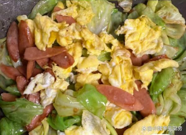第七步:然后倒入火腿腸和雞蛋塊,加上食鹽和雞精等佐料,迅速翻炒均勻,這道卷心菜火腿腸炒雞蛋就可以開吃了。 卷心菜火腿腸炒雞蛋的烹飪小貼士:首先,選擇新鮮的食材非常重要。卷心菜應該選擇顏色鮮艷、葉片鮮嫩的,避免選擇出現黃葉或者爛葉的?;鹜饶c則應該選擇品質可靠、生產日期新鮮的產品,以確保食品安全。雞蛋也要選用新鮮的,這樣做出來的炒雞蛋才會更加嫩滑。其次,對于卷心菜的處理,建議先將葉片一片片剝下來,然后用清水沖洗干凈。在烹飪前,可以將卷心菜切成適當大小的塊狀,這樣更容易翻炒均勻。在炒雞蛋的過程中,可以先將雞蛋打散,加入適量的鹽和胡椒粉調味。然后,在熱鍋中倒入適量的油,油熱后倒入雞蛋液,用鏟子迅速劃散,炒至雞蛋凝固即可盛出備用。 接下來是炒卷心菜和火腿腸,最后放入雞蛋,出鍋前適當調味即可。 網友們,你們是否掌握這道卷心菜火腿腸炒雞蛋的正確做法嗎?(文中的配圖都出自網絡)