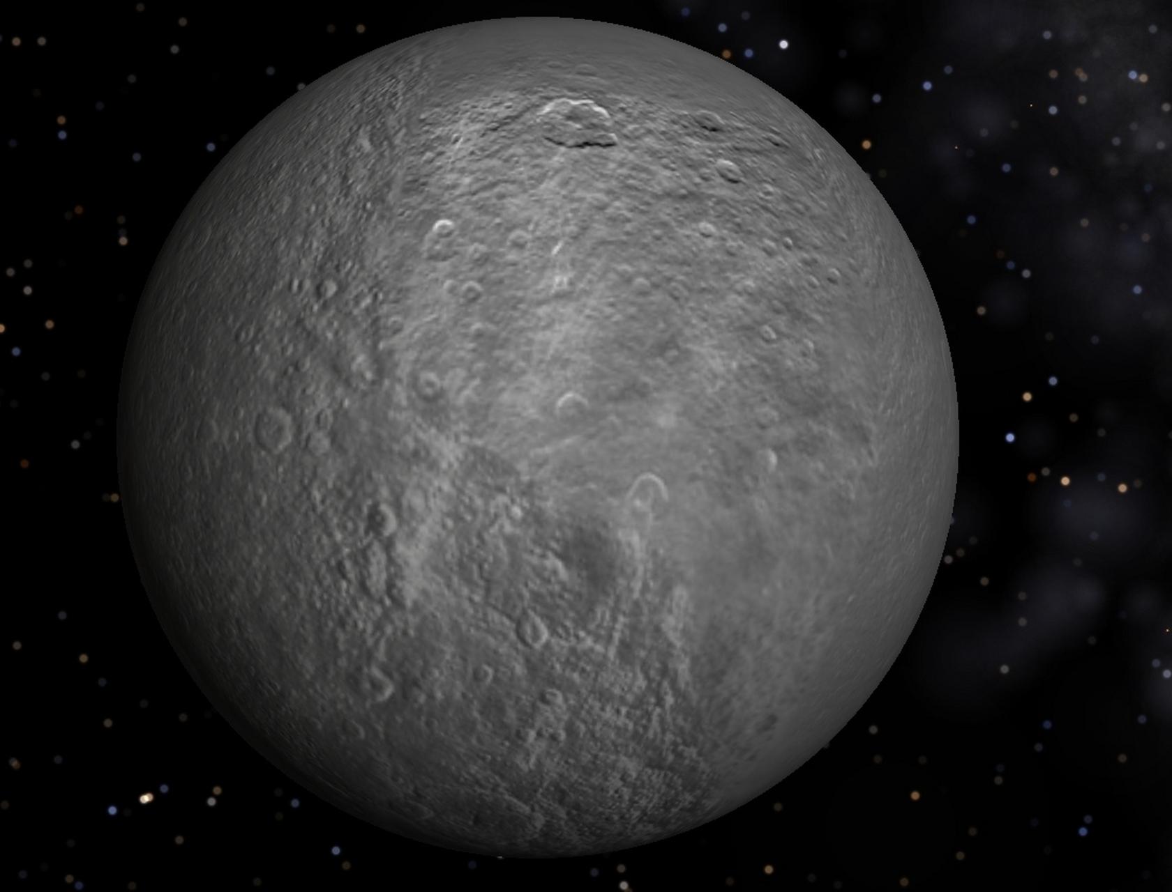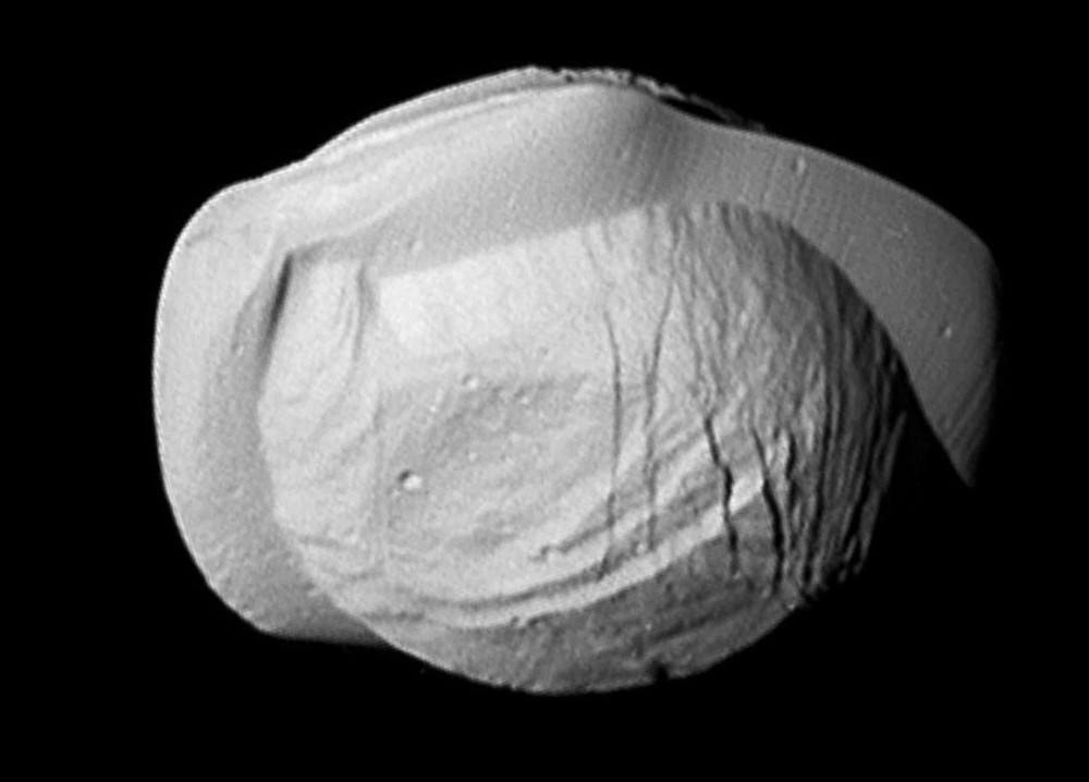 這條赤道脊全長(zhǎng)1200千米,幾乎占據(jù)了赤道周長(zhǎng)的四分之三,底部寬度大約20千米,于是他猜測(cè)土衛(wèi)八受到了土星的潮汐鎖定,即永遠(yuǎn)只有一面朝向土星,一半光亮,一半黑暗。