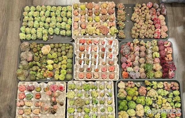多肉葉插苗,性價比很高,價格也很劃算,新手購買最合適多肉的幼苗指的是通過葉片扦插的小苗子,市場上所售賣的景天多肉植物,絕大多數(shù)的品種都是通過葉片進行扦插繁殖的,經(jīng)過一段時間的培育養(yǎng)護,幼苗就會逐漸的長大,從而拿到市場上進行銷售,購買多肉的幼苗和多肉的母本實際上都是差不多的,無非就是大小的問題。  葉插的多肉苗子,市面上售賣的價格相對來說是比較便宜的,尤其是針對當(dāng)下的大環(huán)境,多肉的扦插苗子,價格可以說得上,是非常劃算的,十幾塊錢就可以買到一箱子,一箱子中包含幾十個品種,這對于初次養(yǎng)多肉的新手花友是非常友好的。 便宜的多肉,其實買回家也照樣可以養(yǎng)活,只要你細心去治療,大概需要2~3年的時間,多肉就可以長大,正常的情況下,像南方地區(qū)兩年的時間多肉就可以長成母本的狀態(tài),我國南方地區(qū)的空氣濕度大,溫度偏高,多肉的生長速度格外的迅速。 在眾多的多肉品種里,其實綜合來看都是差不多的,大家養(yǎng)多肉更多的是為了開心,完全沒有必要去追求一些高價的品種,普通的品種也照樣可以養(yǎng)得很好,十幾塊錢的多肉幼苗,經(jīng)過兩年的生長周期養(yǎng)大之后出狀態(tài)了,顏色也是非常漂亮的。 在當(dāng)下市面上所售賣的所有多肉植物種類葉插的多肉幼苗,性價比可以說得上是最高的,尤其是在價格上非常的便宜,二三十塊錢的價格就可以買到一整箱子,對于我們家庭中陽臺養(yǎng)多肉,也就足夠去玩了。 葉插的多肉幼苗,在種植期間需要做到的一步就是要進行修根,多肉修根這一步,也一定是必不可少的,主要的目的是為了讓多肉植物長出新的根系,以便于適應(yīng)新的環(huán)境,新的根系扎根的能力更強,可以更快地吸收花土中的養(yǎng)分和水分,能大大的提高多肉本身的生長速度。 很多的多肉花友為了能在種植期間方便省事,直接將多肉種植在新的花土中,并沒有做到修根這一步,其實這是錯誤的,原有的根系會繼續(xù)固定在原有的土塊中,在較短的時間里,新根系是長不出來的,會嚴(yán)重影響到多肉的生長速度。葉插多肉幼苗修根,更有利于它的生長,不要為了方便省事,耽誤了多肉的后期生長。