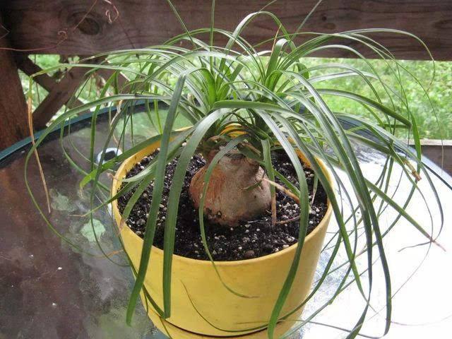 1、一盆酒瓶蘭 酒瓶蘭雖然不是主要的花卉,但是用來做花境的主景樹,還是很有格調的。 如今,花境已經被取消了,這盆酒瓶蘭也被搬到了客廳里,不過看起來依舊完好如初,還是那么長勢旺盛,飄逸! 酒壺蘭形如古代的酒杯,內部裝滿了水和營養物質,由于其極耐干旱,所以很容易栽培。它喜歡散射光線,所以被養在客廳里,非常適合它。