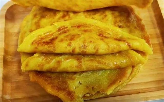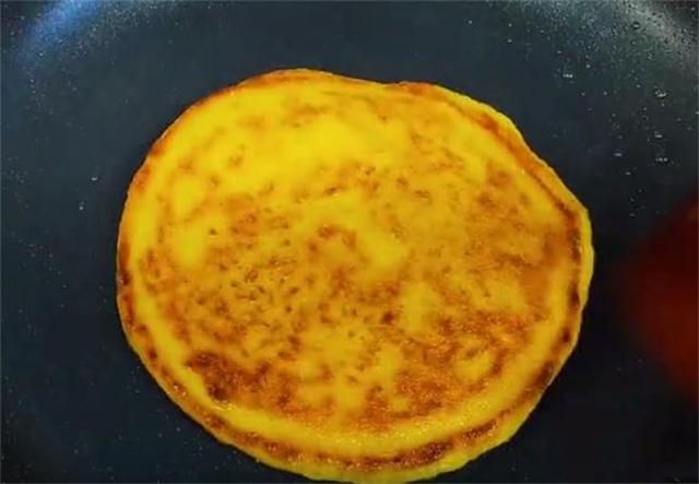 4.鍋中加油開小火,用手團成一團面糊下入鍋中,然后用手輕輕就可以彈開,因為這個面非常的軟,只有這種程度烙出的餅子才不會干硬,每張餅子大概烙三分鐘,左右兩面焦黃即可出鍋。