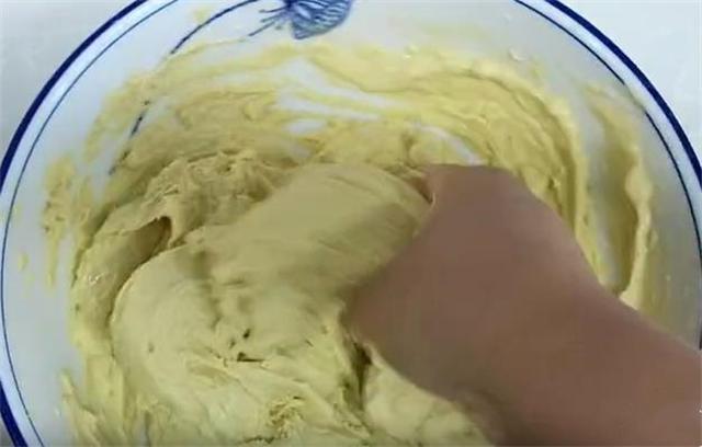3.這個時候面會變硬,我們要加開水再次把它攪勻,像這種稀的面糊狀就可以,只有面糊調(diào)的特別軟,這樣烙出的餅子才不會干硬。