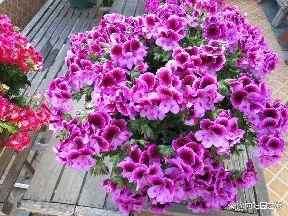 天竺葵相對于絕大多數的花草植物,它的性價比一定是最高的,并且天竺葵在夏天還有一個非常大的優(yōu)點,就是不容易出現病蟲害,放置在陽臺上,平常只需要澆水就夠了,每開完花之后可以用剪刀將殘花修剪掉,打頂修剪,保留養(yǎng)分,讓它的側枝長得更多,側枝的數量多了,開花就會多。