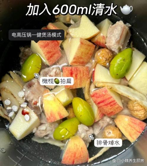 時間已經來到3月中旬以后,再過幾天就是春分節氣,是春季特別重要的日子,春分意味著晝夜平分,夜晚和白天的溫度更加穩定,雨水慢慢變多,氣溫逐漸回升,讓人心情郁悶,嗓子還容易不舒服。春天是一年的開始,許多病毒會入侵,人們處于抵抗力低下的時候,這個時候需要進補,平常要多吃新鮮蔬果,還別忘記喝這款靚湯——蘋果橄欖芡實排骨湯,每周喝幾次,湯品鮮美,營養更容易消化,不懂吃可惜了。春分將至,無論多忙,多給家人喝這湯,潤燥去火,提升睡眠質量。  【蘋果橄欖芡實排骨湯的正確做法】 食材清單:挑選1-2個個頭大一些的蘋果(蘋果是生活中最受歡迎的水果之一,被稱為“平安果”,寓意非常好,營養價值非常高,水分非常充足,但是一定要將瓜皮洗凈,煮熟后的營養價值翻倍),玉竹5克,無花果4個,芡實10克左右,選購優質小排骨一根,青橄欖60克佐料(青橄欖是兩廣地區特有的水果,口感酸澀,營養價值高,用來煲湯可以潤喉止咳,增強抵抗力),一大塊老姜,大蔥半根,冷水和純凈水足量,少許胡椒粉,食鹽若干,其他調味品。 正確制作技巧: 1:提前選購好蘋果,青橄欖,芡實,無花果和排骨等食材,提前把無花果用溫水泡發,玉竹用清水沖洗干凈,芡實也要清水洗凈,控干表面的水分。2:先把蘋果放在容器里,果皮有許多臟東西,撒上一些食鹽,反復搓洗幾下,用鹽水浸泡一會兒,洗凈控干表面的水分。 3:蘋果要中間切開,削掉一些果皮,改刀切成若干塊狀,記得要最后切開,避免出現蘋果氧化的情況。4:青橄欖放在一個容器中,加上幾勺食鹽和清水,清洗掉表面臟東西,生姜和大蔥切成片狀或小段,備用。 5:提前把排骨剁成若干塊,用鹽水泡出血水,鍋中放入一些排骨,加上蔥段和姜片,加上適量冷水沒過食材,將排骨燉煮幾分鐘,逼出血腥物質,沖洗掉一些浮沫即可。 6:另外起鍋(可以用砂鍋或壓力鍋),鍋中放入排骨,青橄欖,蘋果,無花果,芡實,玉竹和姜片等食材,一定要一次性多加一些水。7:大火把湯汁煮開,舀掉一層浮沫,轉到小火燉一個多小時,讓水果的營養煮出來,排骨燉至軟爛,湯品慢慢開始變色。 8:最后加上一丟丟胡椒粉和食鹽,滴入香油,燜煮一小會兒,這道蘋果橄欖芡實排骨湯就制作完成了。 蘋果橄欖芡實排骨湯是一款特別鮮美的靚湯,主要選用蘋果,青橄欖,無花果,芡實和排骨來煲湯,營養更全面,補充維生素和抗氧化物質,潤喉去燥,預防上火,還能改善失眠,祛除體內的濕毒,好處多多。 網友們,你們是否喝過這款蘋果橄欖芡實排骨湯呢?(文中的配圖全部出自網絡)(www.ws46.cOm)