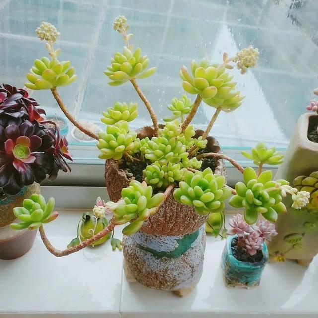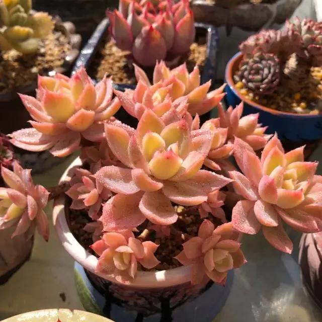 7、新苗 剛得到的多肉,不要急于將其放在戶外,無論是樁子也好,小苗也罷,剛買來就得小心,因為它們都是溫室長大的,運輸過程中,環境會有很大的不同,剛拿到手的時候,就會變得很虛弱,很難養活。 新種出來的多肉,都是經過清洗的,根部和葉子都要清理干凈,放在花盆里養上幾天,然后澆水,在通風陰涼的地方慢慢生長,等養好了,就可以搬到外面的大家庭里了。