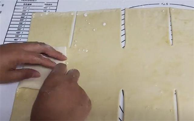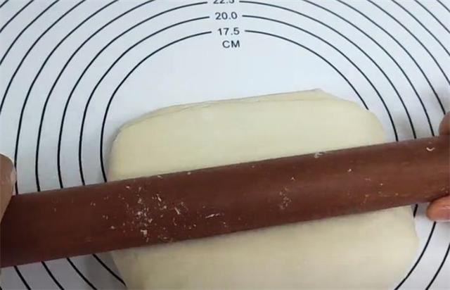3.再用搟面杖像這樣上下左右按壓排出氣泡,然后把它搟薄。