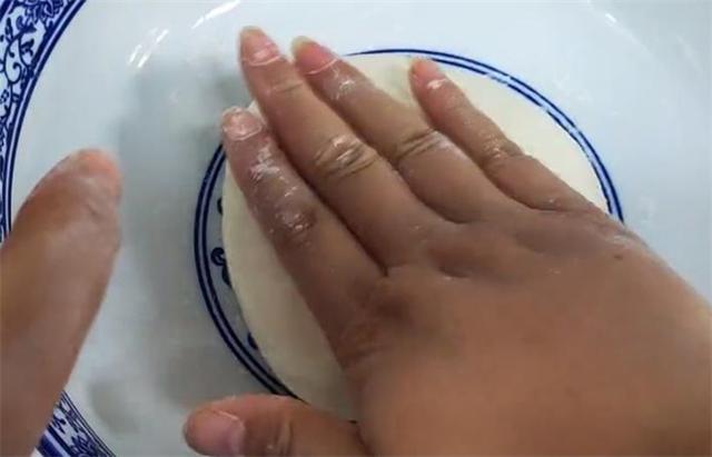 1.我們以300克面粉為例,加三克鹽,160毫升的熱水,水的溫度大概在60度左右,就是微微燙手的程度,然后把它揉成一個光滑面團,蓋上蓋子醒面20分鐘。