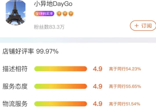 小異地daygo代購可靠嗎小異地daygo代購在淘寶平臺是有3個金冠的商家,另外根據店鋪描述相符、服務態度、物流服務三方面來看,評分均在4.9分左右,好評率也是高達99.97%,并且該店鋪商家對其商品是有正品保障的,因此綜合來說還是比較可靠的。