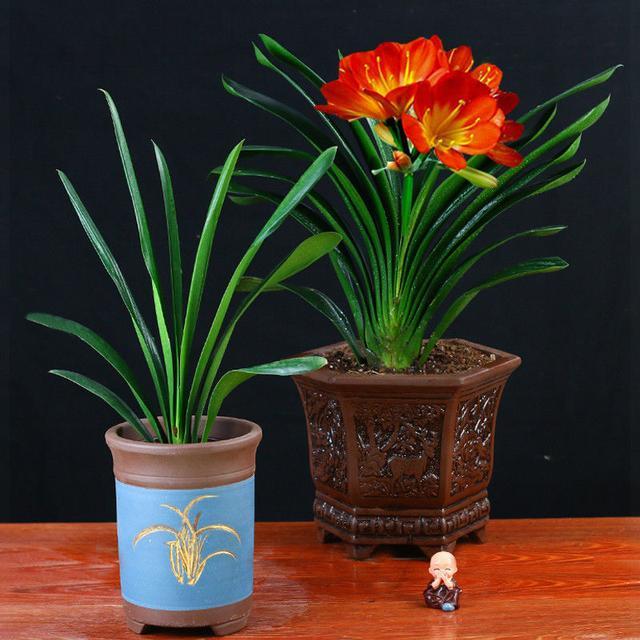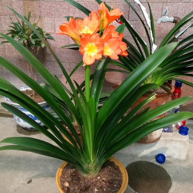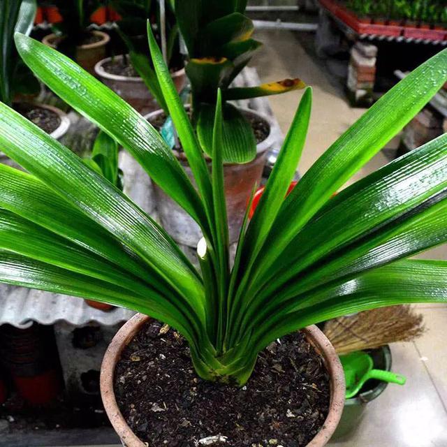 3、開花種小盆,長葉種大盆 君子蘭在小盆里,干濕交替的速度要比君子蘭大盆的要快得多。這就造成了君子蘭在小盆中長期處于比較干燥的環境中,眾所周知,植物都有繁殖危機,如果長期處于干旱的情況下,君子蘭很容易就會開花。 如果是大盆的君子蘭,澆了水,盆土就會慢慢的變干,保持濕潤的環境,可以讓君子蘭的根系自由的生長,有了好的根系,葉子才能長的更好,沒有后顧之憂,也就不會想著要結果子,繁衍后代了。但是,大盆也只是相對而言,不能用大盆,否則盆土長期不干,就會腐爛。