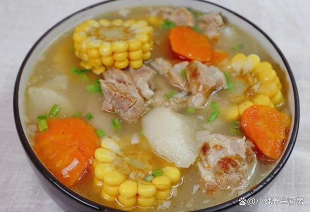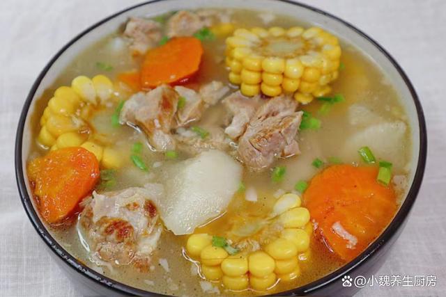 已經(jīng)邁入到3月份,古時(shí)候有句話“陽(yáng)春三月,草長(zhǎng)鶯飛”,到了春季的初期,南方的氣候非常特殊,雨水會(huì)特別充沛,時(shí)冷時(shí)熱,但是早晚的溫差不大,非常適合播種蔬菜,樹(shù)木開(kāi)始冒出嫩芽,花兒都開(kāi)始陸續(xù)綻放。春季是非常舒服的季節(jié),是一年中最佳的養(yǎng)生期,南方人非常注重養(yǎng)生,喜歡拿各種食材來(lái)煲湯,今天就分享一道南方人愛(ài)喝的靚湯——白蘿卜胡蘿卜玉米燉排骨湯,做法超級(jí)簡(jiǎn)單,鮮湯美味,營(yíng)養(yǎng)非常出色,錯(cuò)過(guò)就太可惜了,一起學(xué)起來(lái)吧。陽(yáng)春三月,這湯要經(jīng)常喝,順應(yīng)時(shí)節(jié),補(bǔ)足營(yíng)養(yǎng),順利度過(guò)春天。  【白蘿卜胡蘿卜玉米燉排骨湯的具體做法】