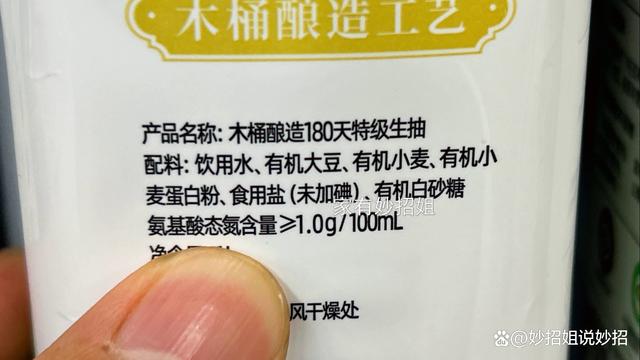 三:挑選醬油的技巧 了解了生抽老抽的制作方式與用法外,再來和大家說一說挑選的技巧,只要認準這幾點,就保準能買到高品質的醬油了。 1,看氨基酸態氮含量。 在醬油瓶身上都會標有它的氨基酸態氮含量,這個氨基酸態氮的含量就直接與醬油的品質有關。國家規定,每100毫升的醬油中,氨基酸態氮的含量不得低于0.4克。一瓶醬油中的氨基酸態氮含量越多,則表示它的品質越好,其鮮味也會更加醇厚。一瓶高品質的醬油,它里面氨基酸態氮的含量通常高達0.8克/100毫升,甚至更高。此外,根據氨基酸態氮含量的高低,醬油被分為特級、一級、二級和三級四個等級,等級越高,醬油的品質就越好。因此,我們如果想要購買到一瓶好的醬油,就千萬不要忽視了它的氨基酸態氮含量。