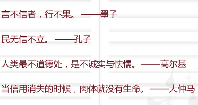 故事九、李沙庚的故事 在清朝乾隆年間,有一位點心店的店主叫李沙庚。剛開始做生意的時候,以貨真價實贏得顧客滿門。但是賺到錢之后,就開始弄虛作假,對顧客也逐漸怠慢,不屑一顧,生意日漸冷落。某一天,書畫名家鄭板橋來他店里用餐,李沙庚驚喜萬分,想讓鄭板橋為自己的商鋪題名。于是鄭板橋揮毫題定“李沙庚點心店”六字,墨寶蒼勁有力,引來很多人觀看,但依舊生意慘淡,無人問津。原來是“心”少了一點,李沙庚請求補寫一點。但鄭板橋回答道:“沒有錯啊,你之前生意興隆是因為‘心’有這一點,而今生意慘淡,正因為‘心’少了一點?!甭牬艘环捄?,李沙庚頓悟,才知道經營的重要性是誠信。從此以后,他痛改前非,有一次贏得了民心,贏得了市場。 故事十、海爾集團的故事 著名的海爾集團曾有過一次這樣的經歷:在與客戶簽發合同之后,由于種種原因,公司延誤了發貨時間,為了守信用,但是決定采用空運,為此損失了一大筆錢,卻由此贏得了信譽??偛米院赖恼f:“我們之所以成功,是因為寧可失去所有的財產,也不愿失去信用。如果我們每個人把誠信的種子中在里,它就會開出最美的花,結出最甜的果?!?/p> 做人就應該像以上故事中說到的那樣,把誠寫在臉上,把信裝在心里。無論是個人還是企業,甚至一個國家的生死存亡都與誠信密不可分,所以做誠信之人要從小做起,小到朋友之間的一句承諾,大到國與國之間的約定。 |