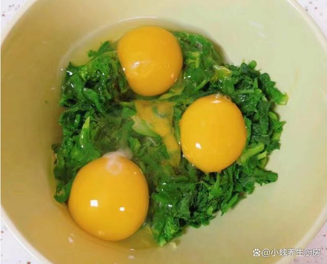 第三步:準(zhǔn)備好一個(gè)空氣,打入三個(gè)土雞蛋,薺菜放入到雞蛋中(也可以用熱鍋炒出水分),加上少許清水,加上半勺白醋,加上生抽半勺,加上食鹽和其他佐料,用筷子攪拌均勻。 第四步:鍋底提前燒熱乎,多加一些食用油,油溫?zé)裏?,淋入調(diào)好的雞蛋液,蛋液煎至微微成型,兩面煎至色澤金黃,用鍋鏟滑散。第五步:盛出裝盤,這道薺菜炒雞蛋就制作完成了。薺菜炒雞蛋的小貼士: 1. 選購薺菜時(shí),要選擇新鮮、嫩綠的薺菜,這樣的薺菜口感更好,也更健康。2. 在炒制前,要將薺菜清洗干凈,去除泥沙和雜質(zhì)。3. 薺菜不宜炒得過久,否則容易變黃,影響口感和營養(yǎng)價(jià)值。4. 可以根據(jù)個(gè)人口味,適量加入鹽、胡椒粉等調(diào)味料,提升菜肴的口感。5. 薺菜不僅可用于炒制,還可以用來做湯、煮粥等,都是非常健康美味的食品。 薺菜炒雞蛋是春季必吃的菜肴之一,食材非常便宜,兩者食材是絕配,鮮嫩美味,清香可口,護(hù)眼明目,養(yǎng)肝護(hù)肝,好處多多。 網(wǎng)友們,你們是否吃過這道薺菜炒雞蛋呢? (上述配圖都出自網(wǎng)絡(luò))