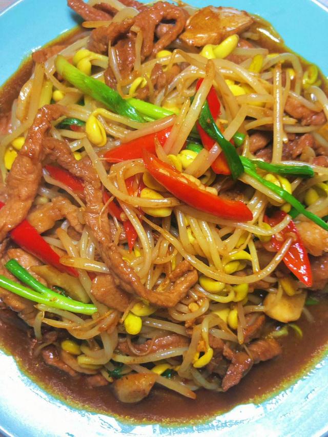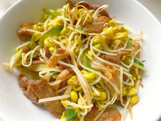 準備材料:豆芽洗凈瀝干水分;瘦肉切成細絲,用少許生抽腌制10分鐘;大蔥切段,生姜和蒜瓣切末備用。 炒制肉絲:鍋中倒入適量食用油,燒熱后放入腌制好的肉絲,快速翻炒至變色,盛出備用。 炒制豆芽:鍋中留底油,放入大蔥段、生姜末和蒜瓣炒香,然后加入豆芽,大火快速翻炒至豆芽斷生。 調味:加入適量生抽、老抽和鹽,根據個人口味調整,翻炒均勻,使豆芽充分吸收調料的味道。 加入肉絲:將炒好的肉絲重新倒入鍋中,與豆芽一起翻炒均勻,讓肉絲和豆芽充分融合。 出鍋:當豆芽炒至斷生,肉絲熟透時,即可出鍋裝盤。 小貼士: