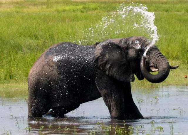 大象如何避免被噎住? 大象吸水時(shí),它們的鼻子并不是像我們用嘴巴那樣垂直地從液體表面抽出水,而是把鼻子伸到液體表面下方,并將鼻孔閉合。它們接著吸一大口水,將水儲(chǔ)存在“鼻瓢”里,然后把水轉(zhuǎn)移到嘴里喝水。這樣做的好處是,大象每次吸的水都不多,這意味著鼻子中存儲(chǔ)的水足夠給大象喝,也不會(huì)使大象嗆住。