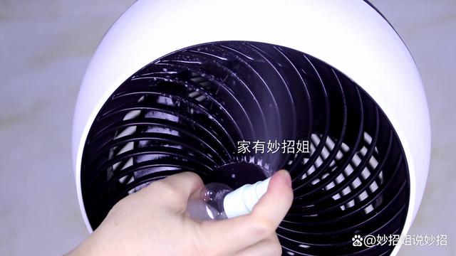 第二步:先將電風扇的插頭拔掉,然后把它調制好的清潔液均勻地噴灑在風扇里面的扇葉上。不過我們要注意,不要噴灑在了電機上,否則還可能會造成電機損壞。溶液中的白醋是一種常見的調味料,它具有很好的軟化作用,可以有效的軟化附著在扇葉上的污漬。而洗潔精則有著很強的去污能力,能有助于將扇葉上的污漬清潔掉。花露水的話,它自帶清香,還能避免蚊蟲靠近。我們利用這個溶液來清潔風扇,也就能輕松將上面的污漬都去除了。