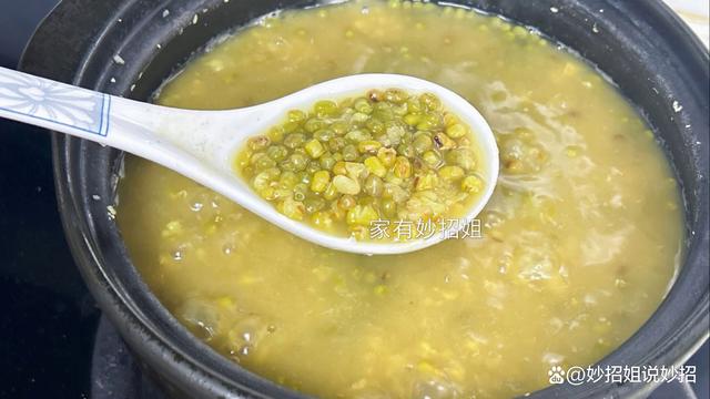 煮的時間差不多了,我們將鍋蓋打開來就可以看到,綠豆都被煮開了花,這樣一道美味的綠豆湯就制作好了,我們關火,將它放在一邊等它變涼后就可以開吃了。可能很多朋友不理解為什么經過冰凍后的綠豆會更容易煮開花呢?其實這是因為綠豆吸收水分冷凍后體積膨脹,可以將表皮撐破,這樣我們再拿去煮,綠豆受熱后會發生劇烈膨脹,表皮的裂縫就會越來越大,也就可以快速煮開花了。這個煮綠豆湯的方法,簡單又快速,下次煮綠豆湯你也可以試試。如果今天的文章對您有幫助,那就點一個關注,點一個贊,感謝您的支持。