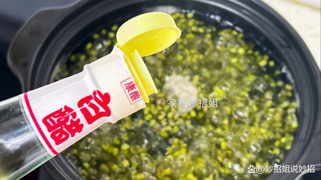 接著我們再開大火開始煮,等到鍋中的水煮開后,我們往里面倒入一點點白醋,或者是擠入幾滴檸檬汁,這樣就可以使煮出來的綠豆更加翠綠,也會更香。喜歡吃甜的,也可以在里面放入適量的冰糖。之后我們再用湯勺攪拌攪拌,使冰糖融化。