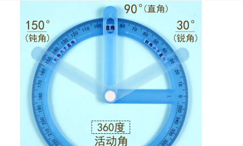 2.活動量角器:量角器是用來量取角的度數的一種儀器。角器可以畫角度、角度畫垂直線、平行線、測傾斜度、垂直度水平度,可以當內外直角拐尺,打開、合攏,可當長短直尺還能較確直觀讀出,并畫出規定尺寸的圓寸。