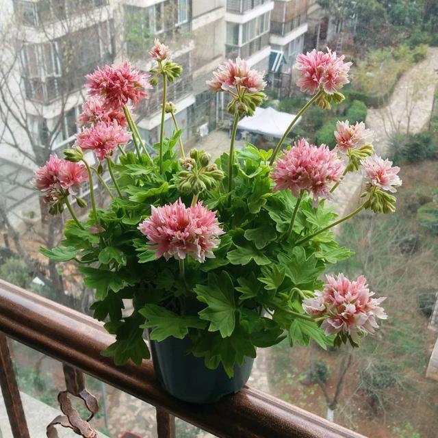 3、第三年,終于確定天竺葵是王者不是萌妹子 這三年來,天竺葵已經種下了十多種天竺葵,有的是從別人那里買來的,有的是從朋友那里拿來的,有的則是厚著臉皮從別人那里要來的。 曾經想過要不要種植天竺葵,但是查了一下天竺葵的百科全書,發現至少有兩百五十多種,這才打消了這個念頭。 第三年,正是栽種天竺葵的黃金時期,一口氣種了十幾種,三十幾棵,差不多把整個露臺都占滿了,還要澆水、施肥、修剪、扦插、更換。那時,自己家的陽臺上,還有6棵新月,不過當時也沒怎么注意。 有一次,下班后,坐在露臺上,看著天竺葵開得正艷,才發現,當初天竺葵被當做“軟萌妹子”養著,哪知道,天竺葵一點都不溫柔,簡直就是陽臺之王。