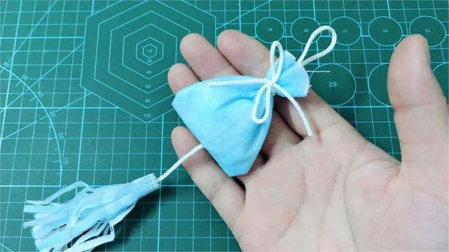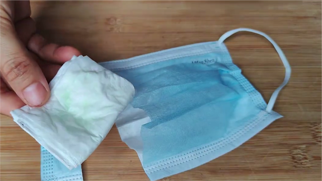 1,我們需要準備一個口罩。將口罩的一邊剪開,抽出其中的鐵絲并留作后用。接著,將口罩的夾層打開,由于口罩是由無紡布焊接而成,所以透氣性非常強。撐開里面的帆布夾層,一個簡單的小收納袋就制作完成了。將其放在一旁備用。