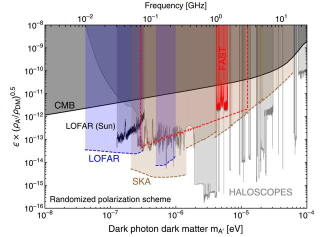 暗物質是宇宙中不發射、吸收或反射光的物質,其中一種可能的暗物質候選者是暗光子,它是一種與標準模型粒子通過動力學混合相互作用的超輕質假想規范玻色子。最近,一組中國物理學家團隊提出了一種利用不同射電望遠鏡來直接探測超輕質暗光子暗物質的方法,他們的論文已發表在《物理評論快報》上。