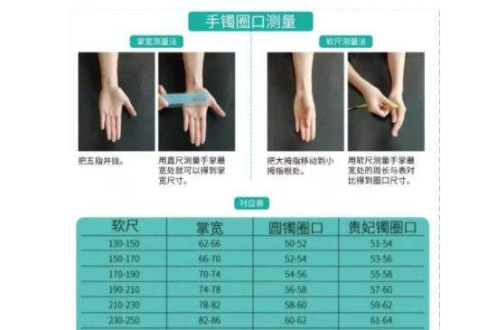 手鐲圈口尺寸通常是指手鐲的內圈直徑,在購買或挑選手鐲時,用根據自身的手掌最寬處的距離來判斷手鐲的尺寸大小,確保手鐲的順利戴進,手鐲的圈口尺寸測量方式較為多樣,但是基本相似。那么,手鐲圈口怎么量尺寸呢?