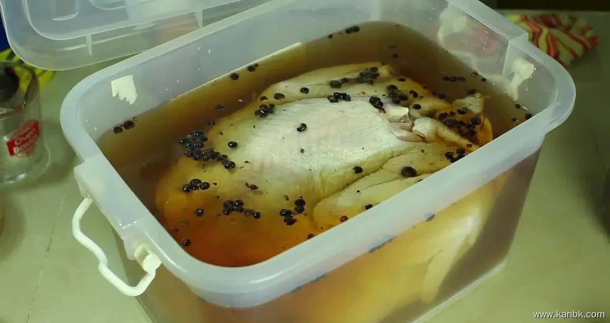將火雞清洗干凈,去掉內臟和雜質,并用刀在表面劃幾刀,以方便入味。