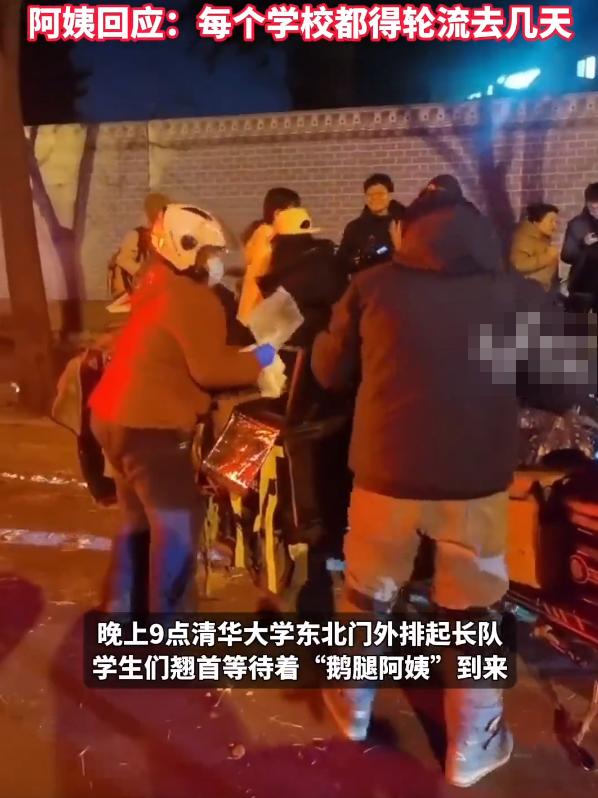 最近,一場(chǎng)烤鵝腿爭(zhēng)奪戰(zhàn)在清華北大兩所大學(xué)之間如火如荼地上演。這位烤鵝腿阿姨,帶著她的招牌烤鵝腿,在人大、北大兩所大學(xué)之間游走,每晚九點(diǎn)多出攤,每天限量20份,讓清華的學(xué)生們爭(zhēng)先恐后排隊(duì)搶購。