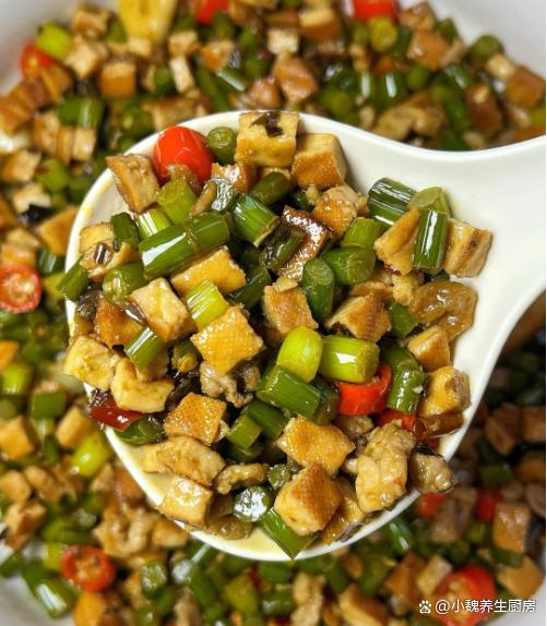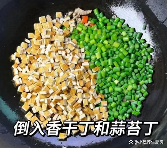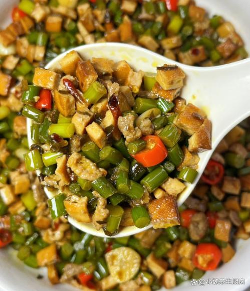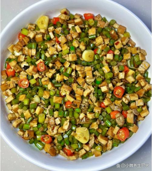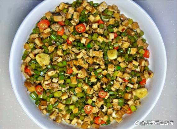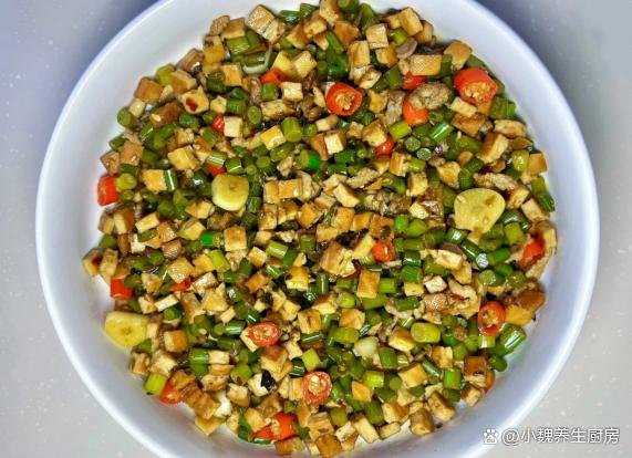 隨著時間的推移,2023已經結束了,2024年剛剛開始,一月到了月中階段,現在仍然處于臘月,又叫作“數九寒天”,寒冷的天氣是代名詞,晝夜的溫差很大,我們四肢出現乏力,記憶力很差,身體處于抵抗力低下的情況。為了保證身體的健康,要多參加運動,注意平常增添衣物,一日三餐要規律飲食,平常多吃新鮮果蔬,多給家里人補充各種營養。今天分享一道十分開胃的菜肴——蒜苔香干炒肉絲,菜色非常好看,香味十足,吃起來味道太絕了。臘月到了,有錢沒錢,多給家人吃這菜,營養美味,解饞又開胃!  【蒜苔香干炒肉絲的具體做法】 食材明細:選購半斤豬肉里脊(或者選擇牛肉里脊,豬肉的肉質要新鮮,按壓很有彈性,非常適合用來炒著吃),新鮮蒜苔120克左右(蒜苔又叫蒜苗,每個地方的叫法不一樣,蒜苔非常鮮嫩,清香撲鼻,可以搭配肉類炒著吃,吃起來巨下飯),香干60克左右,冷水少許,小米辣若干個,若干個大蒜頭,幾個大蒜粒,食用油少許,兩勺生抽,一勺老抽,蠔油一勺,一丟丟食鹽和白糖,雞精半勺,少許紅薯淀粉,酸菜少許,食用油若干,其他佐料。 正確制作順序:步驟1:提前選購好蒜苔,香干和豬肉里脊等食材,先把酸菜洗干凈,切成若干小段,備用。 步驟2:將蒜苔的根部切掉,掐掉蒜苔的尖尖,反復清洗干凈,切成長度相同的段,鍋中加上少許清水,倒入蒜苔焯燙處理,撈出控干表面的水分。步驟3:幾片香干用冷水漂洗,切成若干小丁,鍋中煮一小鍋熱水,將香干丁焯燙處理,瀝干表面的水分。步驟4:小米辣洗凈切成小圈,大蒜坨剝掉外皮,切成一些蒜片,將豬肉洗凈切成小圈,放在容器里。步驟5:瘦肉用料酒去腥,放入一些姜絲,加上少許原味醬油,加上食鹽和胡椒粉腌制,也可以調入淀粉,把瘦肉充分腌制入味。