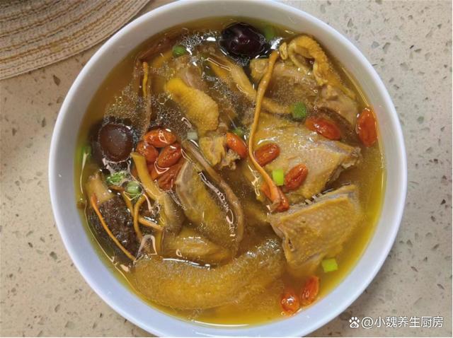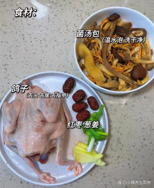一晃眼就到了一月,再一晃眼就要過年了,然后就要開春了,我們總是想讓時(shí)間過得慢一些,工作可以清閑一些,但是事與愿違,我們總是很忙碌,每天有加不完的班,有做不完的工作,每個(gè)人都為了生活而工作。一月處于冬季的尾聲,還是非常陰冷的時(shí)候,溫度基本上都是個(gè)位數(shù),天氣陰冷潮濕,寒風(fēng)凜冽,感覺整個(gè)人都不舒服,氣色非常差。冬天天氣寒冷,我們身子非常弱,需要抓住進(jìn)補(bǔ)的時(shí)機(jī),平常多給家里人煲湯喝。今天推薦一款我們家常喝的鴿子湯——菌菇紅棗鴿子湯,簡單煲一鍋,湯汁巨鮮美。“一月喝這湯,醫(yī)生少幫忙”,每周喝幾次,補(bǔ)氣活血,增強(qiáng)抵抗力。  【菌菇紅棗鴿子湯的食譜解析】 食材明細(xì):挑選新鮮鴿子一只(鴿子是生活中常見的食材之一,古人有一鴿勝九雞的說法,鴿子湯非常鮮美滋補(bǔ),是秋冬進(jìn)補(bǔ)的佳品,喝起來暖和和,補(bǔ)血養(yǎng)腎,對(duì)我們身體有益處),若干個(gè)紅棗,干香菇若干個(gè),菌菇包一袋(羊肚菌、牛肝菌、姬松茸、蟲草花和雞油菌,非常適合拿來煲湯,讓鴿子湯更加鮮美),冷水少許,純凈水足量,大蔥半根,一大塊生姜,優(yōu)質(zhì)枸杞子12克左右,小蔥若干根,少許食鹽,料酒若干,一小勺胡椒粉,其他調(diào)味品。 正確制作順序: 第一步:提前選購好菌菇,香菇,紅棗和鴿子等食材,先把幾個(gè)紅棗洗凈,去核切成兩半,生姜去皮切成若干片狀。第二步:大蔥切成小段,香蔥洗凈切成細(xì)蔥花,菌菇包放在碗中,將菌菇提前泡發(fā)好,然后控干表面的水分。第三步:干香菇用溫水泡發(fā)好,提前將新鮮鴿子宰殺好,去掉內(nèi)臟和表面的絨毛,洗凈剁成小塊。 第四步:鴿子肉放在碗中,加上少許食鹽和姜片,調(diào)入少許料酒,將鴿子肉浸泡10分鐘,去掉血腥味,也可以提前焯水去腥處理,這樣燉出來的鴿子湯更加鮮美。
