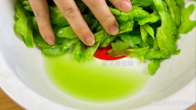 第二個則是將苦瓜切成小塊后,我們放入一點食鹽在里面,用食鹽把苦瓜腌制上十幾分鐘的樣子。經(jīng)過腌制后,苦瓜的苦水就都會被腌制出來了。之后我們再將苦水倒掉,用清水清洗幾遍,把咸味洗掉,就可以去烹飪了。經(jīng)過這樣處理過的苦瓜,吃起來就不會那么苦了。