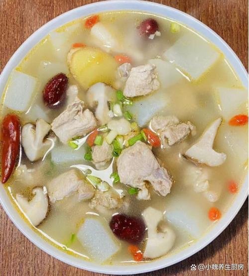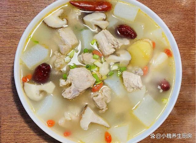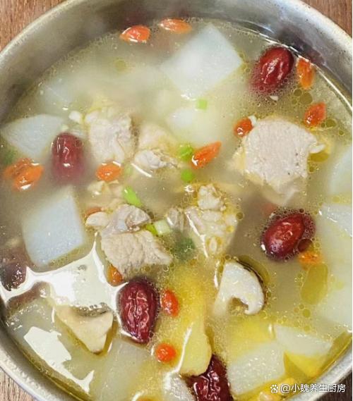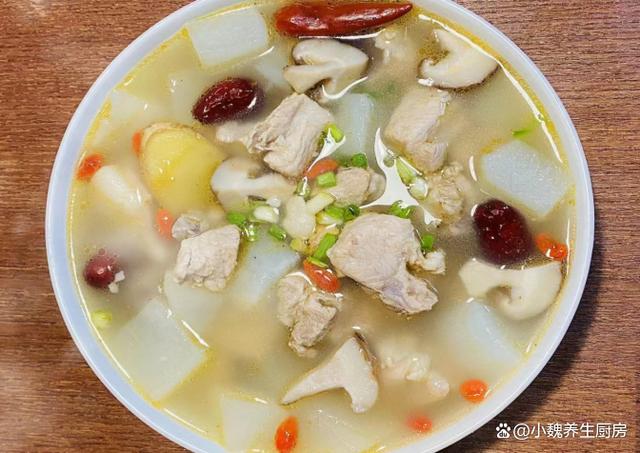 轉瞬間,2024年就到來了,一年一晃眼就過去了,冬天已經到來中期,距離春天的腳步更近了,現在仍然處于寒冬數九天,各地都開始降溫了,氣溫逐漸降低,溫度降低至個位數,天冷會讓人渾身抖擻,氣色會非常差,腸胃非常不舒服,身體的抵抗力低下。冬天的天氣太冷了,出現許多應季蔬菜,比如說白蘿卜和胡蘿卜,白蘿卜非常適合來煲湯,搭配排骨和香菇是絕配,簡單燉一鍋,湯汁巨鮮美。小寒將至,無論多忙,常給家人喝這湯,營養又滋補,舒服度過冬天。  【白蘿卜香菇燉排骨湯的具體做法】 食材清單:幾個新鮮香菇(香菇是很受歡迎的菌類之一,菌肉肥美,鮮嫩美味,營養價值也不低,經??梢杂脕沓词郴驘鯗?,保證湯汁更加鮮美,喝起來很舒服),一小塊老姜,新鮮小蔥若干根,冷水和溫水足量,白蘿卜320克左右(白蘿卜是蘿卜的品種之一,蘿卜的水分很足,吃起來非常清甜,可以做成腌菜或菜干,還能夠拿來煲湯),枸杞子12克左右,料酒少許,選購400克新鮮排骨(排骨要選擇肉質肥厚的,色澤要非常鮮艷紅潤,聞起來無異味,排骨非常適合煲湯喝),若干個紅棗,食用油少許,食鹽若干,半勺白胡椒粉,其他。 正確做法: 1:提前準備好白蘿卜,香菇,紅棗和排骨等食材,提前把白蘿卜的外皮清洗幾遍,去掉蘿卜的外皮,切成大小相同的塊,放在碗中備用。2:幾個紅棗洗凈去核,枸杞子也清水洗凈,一大塊生姜去皮,切成若干片狀,香蔥洗凈打成蔥結,備用。3:另外一部分香蔥洗凈,切成若干若干小段,香菇的菌柄切掉,反復清洗幾次,切成若干片狀。 4:提前把排骨剁成若干塊狀,用冷水浸泡出血水,鍋中放入一些排骨塊,加上冷水沒過全部食材,丟入蔥結和姜片,鍋中加上料酒來去腥,把排骨燉煮幾分鐘,去掉排骨的血腥味。5:鍋底繼續燒熱,倒入焯水好的排骨,用鍋鏟迅速煸炒至變色,加上料酒兩勺和少許料酒,加上兩大碗冷水。 6:大火把湯汁煮沸,中途舀掉一層浮沫,中小火繼續煲25分鐘,最后放入白蘿卜塊和香菇,放入紅棗少許,小火煲40分鐘,讓一些食材燉煮至軟爛。 (www.ws46.com)