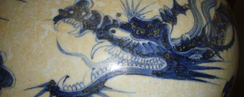 元青花的胎體與釉面在長期使用和流傳中,會存在不同程度的磨損與傷缺,比如劃痕、軟道、剝釉、磕缺等等,并多了些土沁和水沁,但可見其釉面依舊寶光十足,潤澤如玉。 3、氣泡