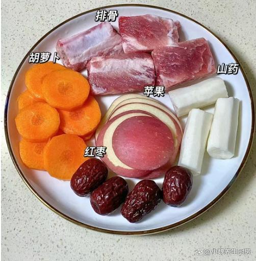 時間如白駒過隙,一晃眼就過去一年,自己和孩子又年長一歲,老公都開始長白頭發了,感覺時間過得太快,一晃眼就過去了,馬上要迎來新年的到來,在新的一年里,祝福大家伙平安健康,吉祥如意。時間到了12月末,冬季處于中期階段,寒冬階段,經常要遭受雨雪天氣和冷空氣的考驗,溫度急速下降,我們要做好防寒,飲食上要多喝暖和和的湯品。前段時間,平安夜購買了很多蘋果,一天一個都吃不完,今天準備用來煲湯,搭配胡蘿卜,山藥和排骨燉一鍋,湯汁會更加鮮美,改善我們的失眠情況,氣色越來越好。天冷了,蘋果和它煮著吃,營養易消化,補腦安神,順利過完冬天。