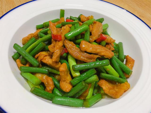 做法: 豬肉切成薄片,加入生抽、料酒和淀粉腌制10分鐘。 蒜苔洗凈切成段備用。 熱鍋涼油,放入腌制好的豬肉片煸炒至變色。 加入蒜苔段一起翻炒至熟透。 最后加入鹽調味即可出鍋。 二、蒜苔炒雞蛋