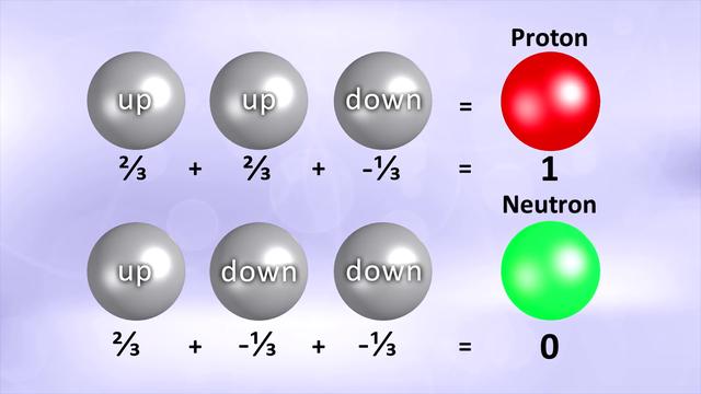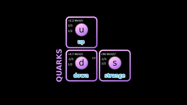 在1920年代,物理學家越來越清楚地認識到,原子是由帶負電荷的電子和帶正電荷的原子核組成的。這個模型雖然簡單易懂,但卻留下了一個大問題:如果同種電荷互相排斥,那么原子核中的質子為什么能緊密地堆積在一起?顯然,必須要有某種極強的力量才能克服這種排斥力。 1964年,默里·蓋爾曼提出,如果介子和其它傳遞強力相互作用的粒子由更小的基本粒子組成,則這個危機可以被化解。蓋爾曼以一本愛爾蘭小說中的術語來命名這些基本粒子:夸克。在他的理論模型中存在著三種類型的夸克:上夸克、下夸克和奇夸克。上夸克攜帶的電荷為2/3,下夸克和奇夸克攜帶的電荷為-1/3,它們的自旋都為1/2。