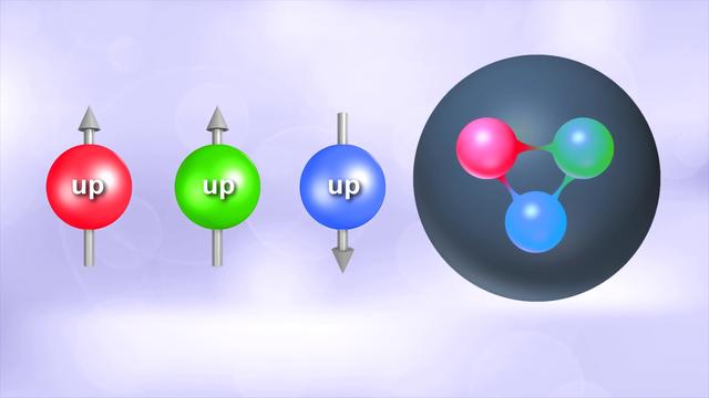 但是,三夸克的想法也有問題,它們之中至少有兩個具有相同的量子特性。根據泡利不相容原理,兩個具有相同量子特性的費米子不能同時存在于相同的位置。1964年,美國物理學家沃利·格林伯格提出,夸克還具有“顏色”這個額外的屬性。這是一種電荷的隱喻,一種顏色電荷。如果是這樣的話,它們會有不同的色電荷,因此它們不會違反泡利不相容原理。