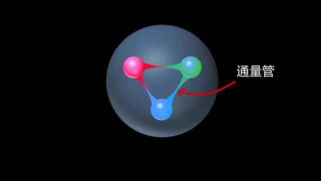 有紅、綠、藍三種顏色的電荷,與我們所看到的顏色類似,為了獲得中性電荷,必須結合三種色電荷,就像當你結合可見的紅、綠和藍,就可以得到一個中性的白色一樣。在量子色動力學中,顏色必須是守恒的,也就是說,所有的顏色必須組合在一起才能得到一個中性的白色。這意味著任何含有色荷的粒子必須與其他粒子結合才能形成中性色。 這種粒子被稱為膠子,因為它的作用就像膠水把夸克粘在一起。這些膠子是如何工作的?類似于量子電動力學處理電荷和作為電磁力的中介粒子光子,量子色動力學處理的是色電荷和被稱為膠子的中介粒子。 當你試圖拉開兩個夸克時,強力就像是一個強大的彈簧,當你把它們分開得越遠,消耗的能量也就越多,這往往會把夸克拉回核子內部。這些膠子-膠子之間的相互作用將色場限制在稱為“通量管”的弦狀物體上,在被拉伸時就會施加恒定的力。但是,如果有足夠大的力來拉夸克,通量管就會斷裂,夸克就會被拉開。