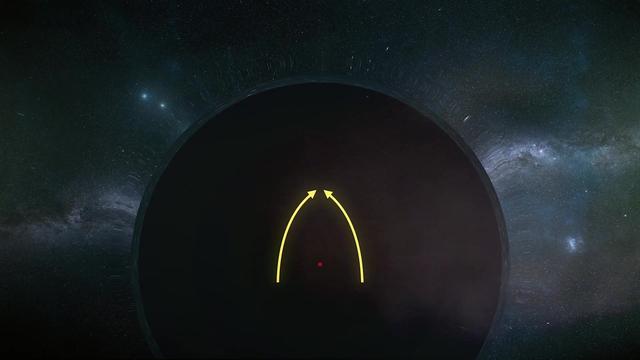 在廣義相對論中,我們用稱之為測地線的網格線來描繪時空的結構,它們是物體在引力場自由落體所經過的路徑。光線所經過的路徑稱為零測地線,它們是劃分時空結構的黃金標準。經過任何引力場的零測地線往往都會會聚在一起,這就是引力透鏡。由普通物質產生的引力場總是會產生這種會聚作用,引力場的這種聚焦特性被稱為廣義相對論的弱能量條件,它適用于任何黑洞。因此,進入黑洞的零測地線會收斂。