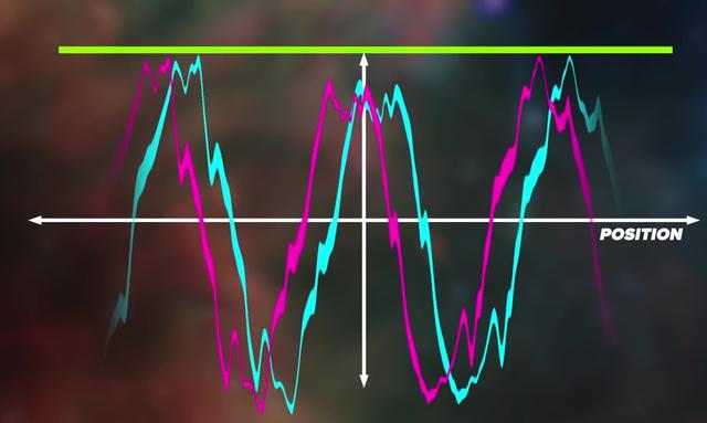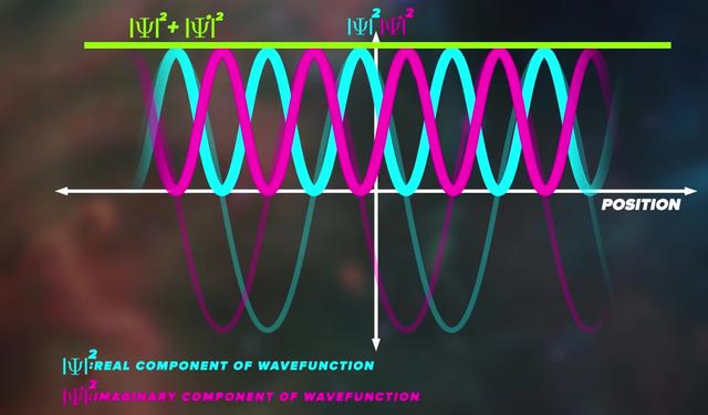 波函數是量子可能性的振蕩,它在空間和時間中移動。它不是簡單的波,在數學意義上,它實際上是一種復數波。它有由實數和虛數組成的兩個部分,這兩個部分彼此同步振蕩,但相位偏移了一個恒定的量。當我們應用玻恩法則時,我們在做的是將這兩個部分的幅度平方加在一起,得到的值不依賴于相位。