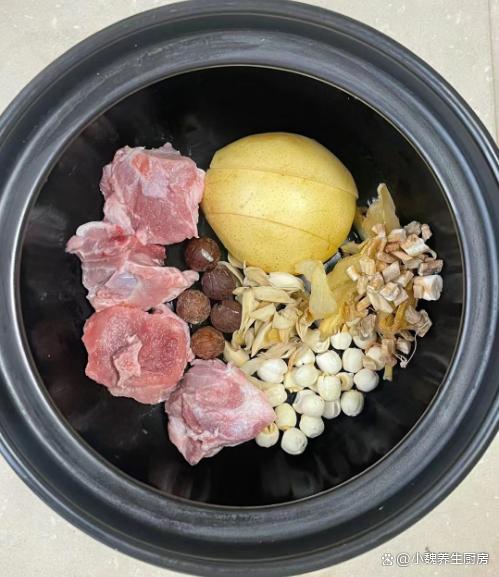 隨著時間的推移,秋去冬來,時間已經(jīng)就到了寒冬時節(jié),冬天天氣太冷了,陰冷潮濕的天氣,讓人嗓子不舒服,身體的抵抗力低下,白天干活沒有力氣,晚上容易失眠,影響我們的正常生活。現(xiàn)在我們的生活條件越來越好,但是也出現(xiàn)很多新型的疾病,比如肥胖者,三高和失眠癥等,失眠癥是我們家最頭疼的問題,失眠不僅僅要少熬夜,加上適當?shù)倪\動鍛煉,飲食上要作出改變,可以給家里人嘗嘗這款鮮湯——雪梨蓮子百合豬骨湯,喝起來特別暖和,更利于營養(yǎng)的消化和吸收,早食早受益。失眠最怕喝“這碗湯”,冬天要經(jīng)常喝它,養(yǎng)心安神,增強抵抗力。  【雪梨蓮子百合豬骨湯的食譜解析】 食材明細:選購新鮮雪梨1-2個(雪梨是一種甘甜多汁的水果,雪梨的食療價值非常出色,既可以直接生吃,拿來煲湯非常不錯),選購新鮮豬骨450克,沙參20克左右,白蓮子50克左右,生姜一大塊,冷水和純凈水少許,料酒若干,干百合30克左右,海椰皇少許,溫水少許,若干個紅棗,枸杞子20克左右,食鹽少許,胡椒粉少許,玉竹30克,其他調(diào)味品。