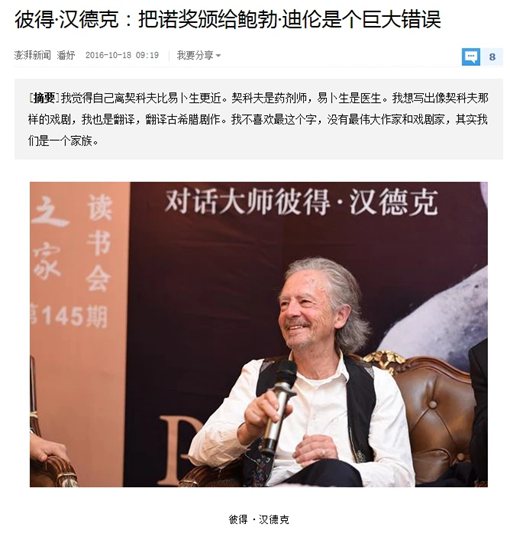 昨天,瑞典學院公布2018和2019的諾貝爾文學獎獲得者是托卡爾丘克和漢德克,不過很多網友似乎對這兩位作家都不太熟悉,所以這次就為大家做個簡答的介紹。彼得·漢德克出生于奧地利格里芬,他是當代德語文學最重要的作家之一,同時他身上也一直伴隨著很多爭議,在國際上更有著“國際知名老憤青”之稱。獲得諾貝爾文學獎以后,這兩位作家的作品肯定會迎來一段爆發期,下面就一起來了解下吧。![]() 總結漢德克從業至今的經歷,他寫了《罵觀眾》但獲得觀眾的喜愛,罵遍歐洲媒體卻獲獎無數,罵過諾獎評委但獲得了諾貝爾文學獎,也算是一個傳奇。 “這是一個巨大的錯誤——把諾貝爾文學獎頒給鮑勃·迪倫。對我來說,文學是閱讀的,而鮑勃·迪倫不能被閱讀。諾貝爾文學獎評委會的這個決定,其實是在反對書,反對閱讀?!Z貝爾文學獎頒給他,其實沒有什么意義,甚至是對文學的侮辱。這個決定很顯然是一些不讀書的人做出的。鮑勃·迪倫的詞,如果沒有音樂,什么都不是?!?/p> 上文是三年前,2016年諾貝爾文學獎剛出爐時,奧地利作家彼得·漢德克對諾獎評委的一次“炮轟”。這還僅僅是漢德克漫長懟諾獎歷史中的一次而已。之前他還嚷嚷過“諾貝爾文學獎應該廢除”這種話,被廣泛認為因為太口無遮攔,盡管實力足夠,但應該不太會被諾獎賞識。 而今年,諾獎評委通過把2019年的獎給他,某種程度上糾正了自己“巨大的錯誤”。而把2018年的獎給波蘭作家奧爾加·托卡爾丘克,則是一個過于穩妥,或者說比較老實的選擇。 挺老實,也挺有種的,這是筆者對2018/2019諾貝爾文學獎雙黃蛋的印象。 ![]() 一、有男有女,有劇作家沒詩人,有德語作家沒英語作家,頒獎結果符合大眾預期 在筆者10月7日的預測文章中(2019諾貝爾文學獎毒家預測:今年的“毒奶”,喂給這些人),大致預測了三類不可能得獎的人和三類比較有希望的人。從最后的得獎結果來看,基本方向是對的。再把這六類人羅列一下: 哪些人基本沒戲? 1. 英國、美國及泛英語區男作家 2. 幾乎所有詩人 3. 有過“劣跡”的作家 哪些人比較有希望? 1. 女作家 2. 非洲、阿拉伯、德語、西班牙語等被忽視已久的作家 3. 劇作家 最后的得獎結果,一個女作家,一個用德語寫作的劇作家。這可以說是一個符合大眾期待,沒有讓人大跌眼鏡的結果。 英語區作家率先出局,不是因為寫得不好,而是因為他們剛得過。距今最近的兩次諾獎分別頒給了英國人石黑一雄和美國人鮑勃·迪倫。在諾貝爾文學獎的歷史上,無論是國籍還是語種,很少有連續頒給一國或一個語種的。所以在今年的頒獎里,英語區作家先天吃虧,是最不被考慮的那撥人。 詩人也是同樣的道理。在諾貝爾文學獎119年的歷史上,詩人得獎不到20次,正常來說一位詩人得獎后,5年內不太可能再有詩人獲獎。2016年,鮑勃·迪倫獲獎時是被當作詩人看待的(湊合把歌詞當詩看吧,要不還能當啥),所以近年內,詩人再獲諾獎的概率不大。 “劣跡”作家和女作家,這兩個群體可以放在一塊看,是一因導致的兩果。2018年,諾獎一位女評委的丈夫爆出了**和泄密丑聞,導致諾獎聲譽受損,2018年停頒一年,多位評委辭職。新選上來的一批評委面對的第一個問題,就是要清除丑聞遺毒,恢復諾獎聲譽。所以像韓國作家高銀那樣,雖然是多年諾獎熱門,但近年來爆出過性丑聞的作家,是絕對不會在今年被評委考慮的。 而解決性丑聞帶來的困擾,最簡單的辦法就是把獎給一位女作家。所以在今年頒獎之前,大家猜測一定會有女作家得獎,而評委真的就“順應民意”,獎給了一位女作家。 彼得·漢德克的獲獎,更像是為填補德語區和劇作家這兩個空白。上一個得獎的德語作家,是2009年得主德國人赫塔·米勒,而上一位得獎的劇作家,是2005年的英國人哈羅德·品特,都有十年以上的間隔了。諾獎說到底還是有很深的“排排坐吃果果”傳統的,講究雨露均沾,某一個區域太久不得獎,可能就是該得獎的征兆了。 ![]() 二、托卡爾丘克像是符合2018年諾獎得主“用戶畫像”的人選,服眾,但無驚喜 后世記載2018年的文學獎項時,會發現這個叫奧爾加·托卡爾丘克的56歲波蘭女人,一人奪下諾貝爾獎和布克國際獎兩項最重要的大獎。只是2018年時,她還不知道諾獎將在一年后補給她。 在2018年發生諾獎評委性丑聞及泄密丑聞后,全世界都在盯著他們能做怎樣的補救措施。在決定于2019年補頒2018年的獎項后,這個年份的獎已經不再只具有文學上的意義,而是提升到了國際政治的高度——必須政治正確,必須讓人挑不出毛病。 2018年的得主,需要是這么一個人: 女作家; 國際知名,說出來大家都知道,要服眾; 作品要有足夠的文學性,不要再像鮑勃·迪倫一樣在文體、語言上有爭議; 不要有太強的女權烙印,避免被人說“把獎頒給了政治,而不是文學”。 這最后一點尤為重要,即既要政治正確,又要不給人因政治頒獎的印象。所以那些整天把女權掛嘴邊上的人,反倒不適合在這一年得獎。 按照這個標準篩選下來,再把英語系的作家如阿特伍德、瑪麗蓮·羅賓遜、喬伊斯卡·羅爾·奧茨、莉迪亞·戴維斯排除掉,剩下的可選擇人選其實并不多。 比如,在這幾天火遍全網的我國作家殘雪,就是嚴絲合縫符合這個得獎標準的。她在開獎前幾天突然成為熱門,也正因為她是個理想的2018年獲獎人選。 殘雪的作品在國外評價很高,比如美國女作家Porochista Khakpour就曾