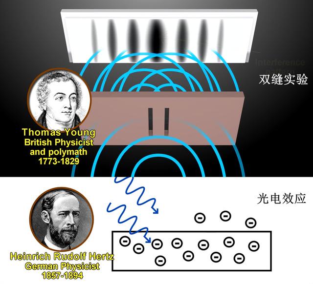 1801年,英國(guó)物理學(xué)家托馬斯·楊進(jìn)行了一個(gè)簡(jiǎn)單的雙縫實(shí)驗(yàn),結(jié)果表明光是一種波,因?yàn)樗纬闪艘环N干涉圖案。所以在19世紀(jì)的大部分時(shí)間里,光被認(rèn)為是一種波。然而,1887年德國(guó)物理學(xué)家海因里希·赫茲發(fā)現(xiàn)了一種叫作光電效應(yīng)的東西,這是一種光可以從原子中分離電子的現(xiàn)象,這不是經(jīng)典波應(yīng)該表現(xiàn)的方式。