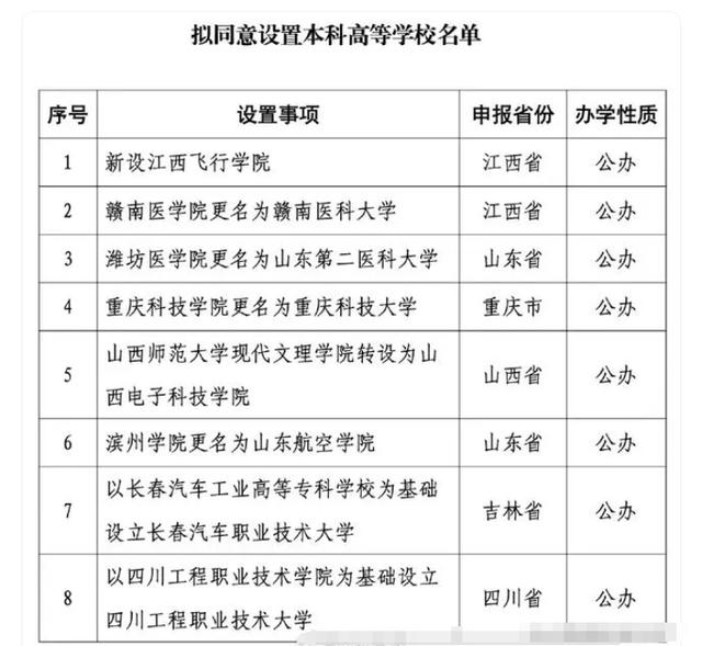 近日,教育部在官方網站公示了一批擬同意設置的本科高等學校,這無疑為全國各地教育和社會發展注入了新的力量。在這批充滿活力的新高校中,位于江西省的江西飛行學院和贛南醫學院、位于山東省的濰坊醫學院和濱州學院,以及位于重慶市、山西省、吉林省和四川省的高校,都顯得格外引人注目。 在江西省,新設立的江西飛行學院猶如一位朝氣蓬勃的青年,正懷揣著對未來的憧憬和夢想,準備展翅高飛。這所學院的出現,象征著江西省在航空領域的人才培養上邁出了堅定的一步。