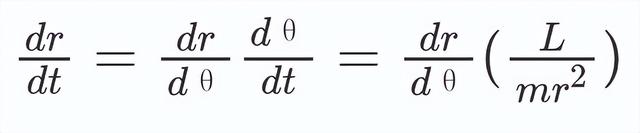 因為行星軌道方程與時間無關,所以我們可以利用鏈式法則消去dt,如下: