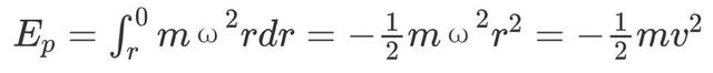 廣義相對論也有兩個(gè)重要的基礎(chǔ):廣義相對性原理和等效原理,其中等效原理在我們下面的推導(dǎo)中非常重要。簡單來說,等效原理表明,均勻引力場中的靜止參考系與具有適當(dāng)加速度的加速運(yùn)動參考系等價(jià)。最著名的例子就是電梯思想實(shí)驗(yàn),以加速度g上升的電梯,里面的人是分不清自己靜止在地球表面還是在太空中加速。 因?yàn)槟抉R處的時(shí)鐘還受到了一個(gè)慣性離心力mωr,根據(jù)等效原理,我們可以把它看成是一個(gè)與之等效的引力場。我們把中心點(diǎn)的引力勢能設(shè)為零,則木馬處的勢能為:(www.ws46.com)