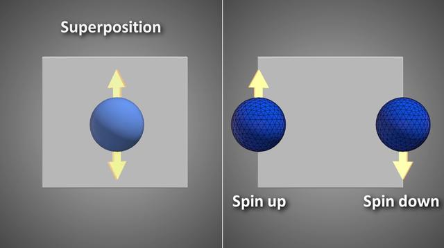 首先,讓我解釋一下量子世界是不確定的。現在想象一個量子粒子,如果我們觀察它,我們可能會以50:50的概率發現它自旋向上或自旋向下。我們可能會認為,在觀察它之前,粒子早就是其中的一種狀態了,只是我們觀察之后才會發現它是哪種狀態。但事實并非如此,量子力學認為,在我們觀察和測量之前,自旋不處于任何一個方向,測量行為本身才迫使宇宙做出選擇。